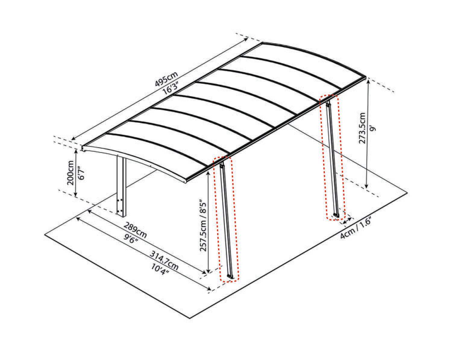 - Suitable for Palram Arizona 5000 Wave & Breeze Carports