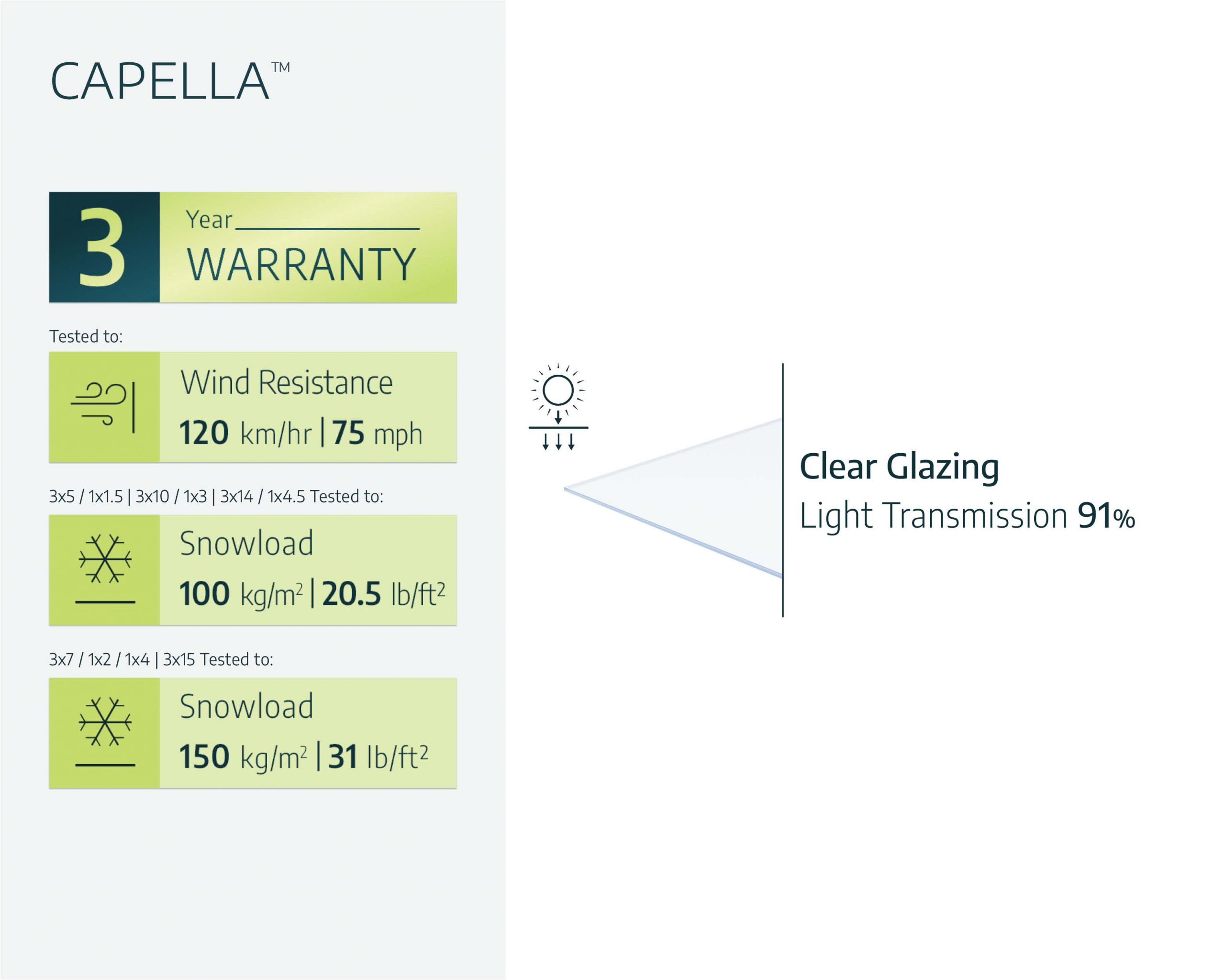 - Lifetime resilient glazing; does not fracture, become brittle or turn yellow over time