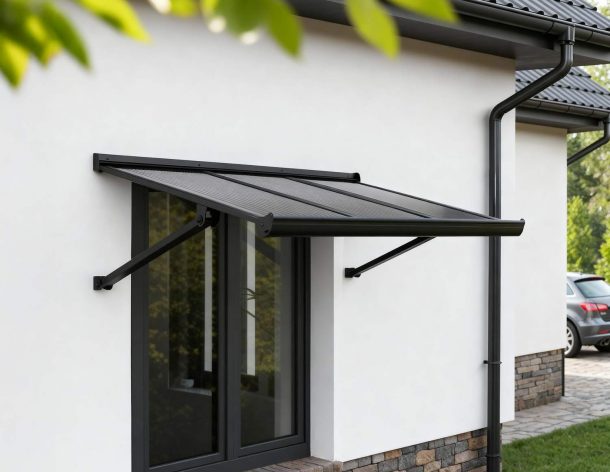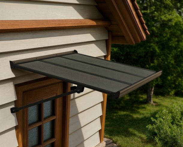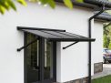 The Canopia Augustine Door Awning combines modern elegance with everyday strength to protect your home’s entrance. Its bold black aluminum frame, opaque gray twin-wall panels, and precision-engineered supports, deliver reliable year-round performance while enhancing curb appeal.