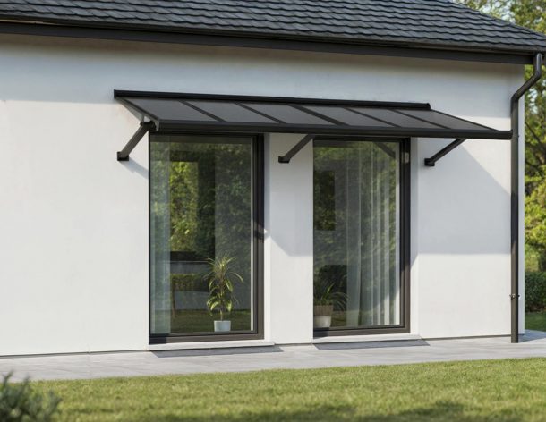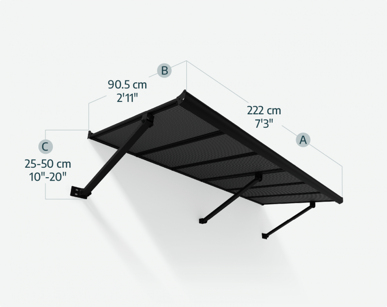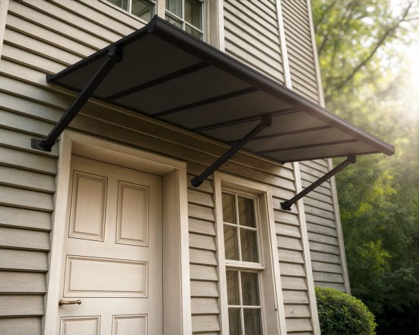The Canopia Augustine Door Awning combines modern elegance with everyday strength to protect your home’s entrance. Its bold black aluminum frame, opaque gray twin-wall panels, and precision-engineered supports, deliver reliable year-round performance while enhancing curb appeal.