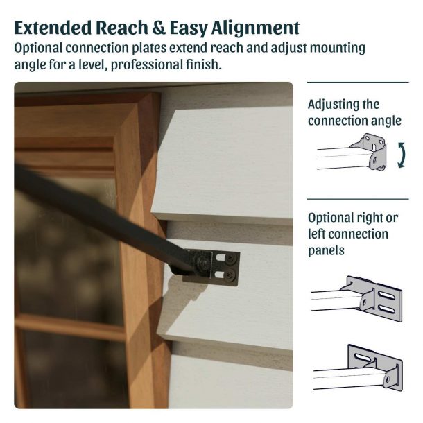 - Extended Reach and Easy Alignment – Optional connection plates extend reach and adjust mounting angle for a level, professional finish.