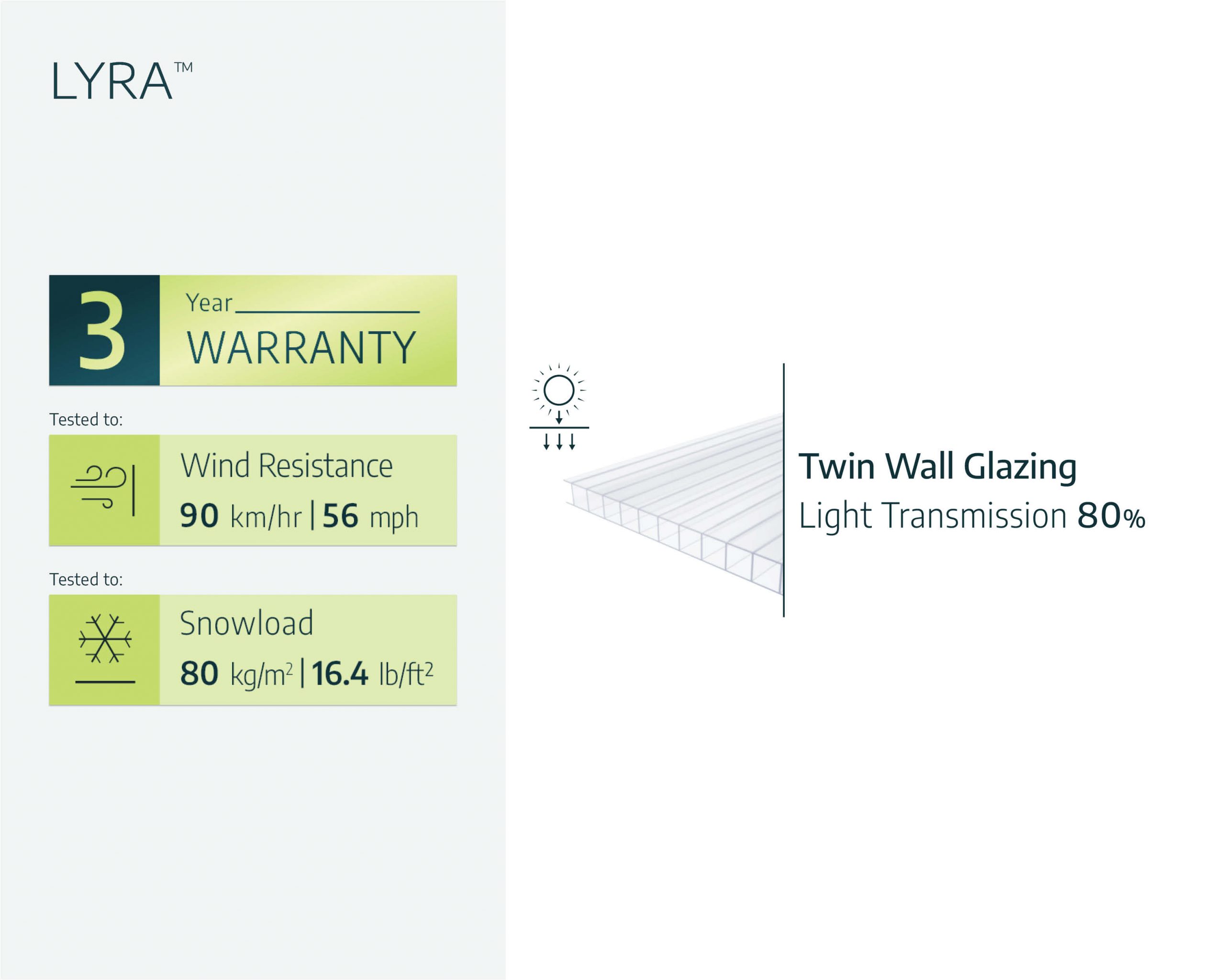 Virtually unbreakable, 6 mm Twin-Wall Polycarbonate panel, blocks 100% of the harmful UV rays 100% UV protected; does not discolor, fracture or become brittle over time Ready to assemble pre-cut panelRating and Reviews