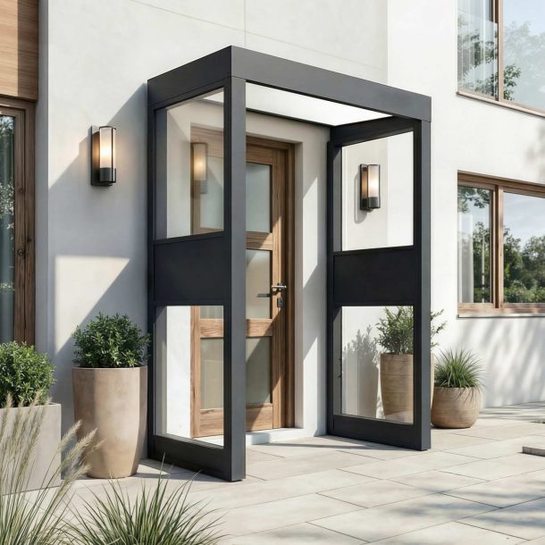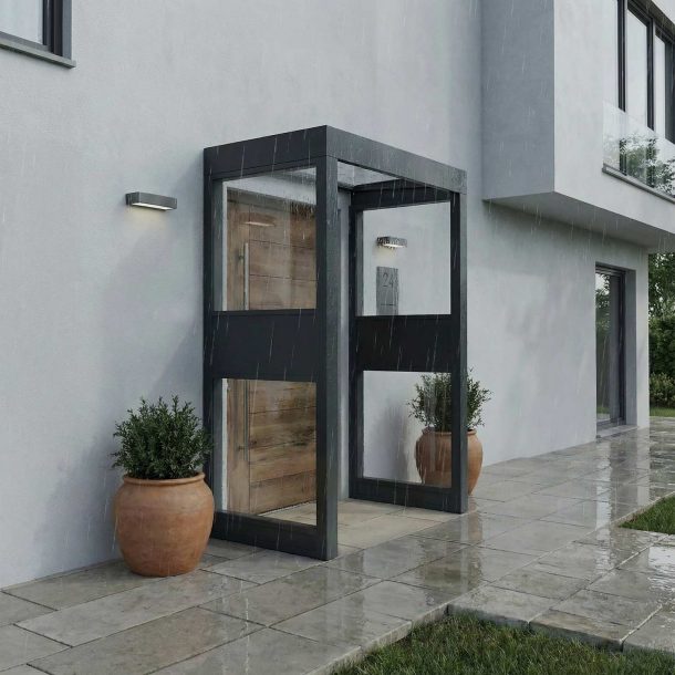 Designed exclusively for use with Sophia awnings, these integrated side wall panels provide added protection, modern style, and a welcoming look for your home’s front or back entrance. Shield your doorway from wind, rain, and snow. The Sophia Sidewall creates an extra layer of coverage, helping to keep your entry dry and comfortable year-round. Enjoy your choice of a full range of sizes and configurations, one side wall left or right, and dual sides for optimal enclosure. With its sleek anthracite grain frame and crystal-clear glazing, the Sophia Sidewall blends seamlessly with the Sophia awning’s contemporary lines—enhancing curb appeal while offering functional shelter. Crafted from high-quality powder-coated aluminum and clear acryl glass, the sidewall resists rust, yellowing, and everyday wear. It’s engineered to stay beautiful with minimal upkeep.