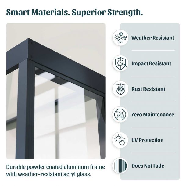 - Heat Block Technology: Ultra-safe, high impact 4 mm white opal acrylic panels have Heat Block Technology that reduces harmful UV rays and protects your front door and window frames from wear and tear.