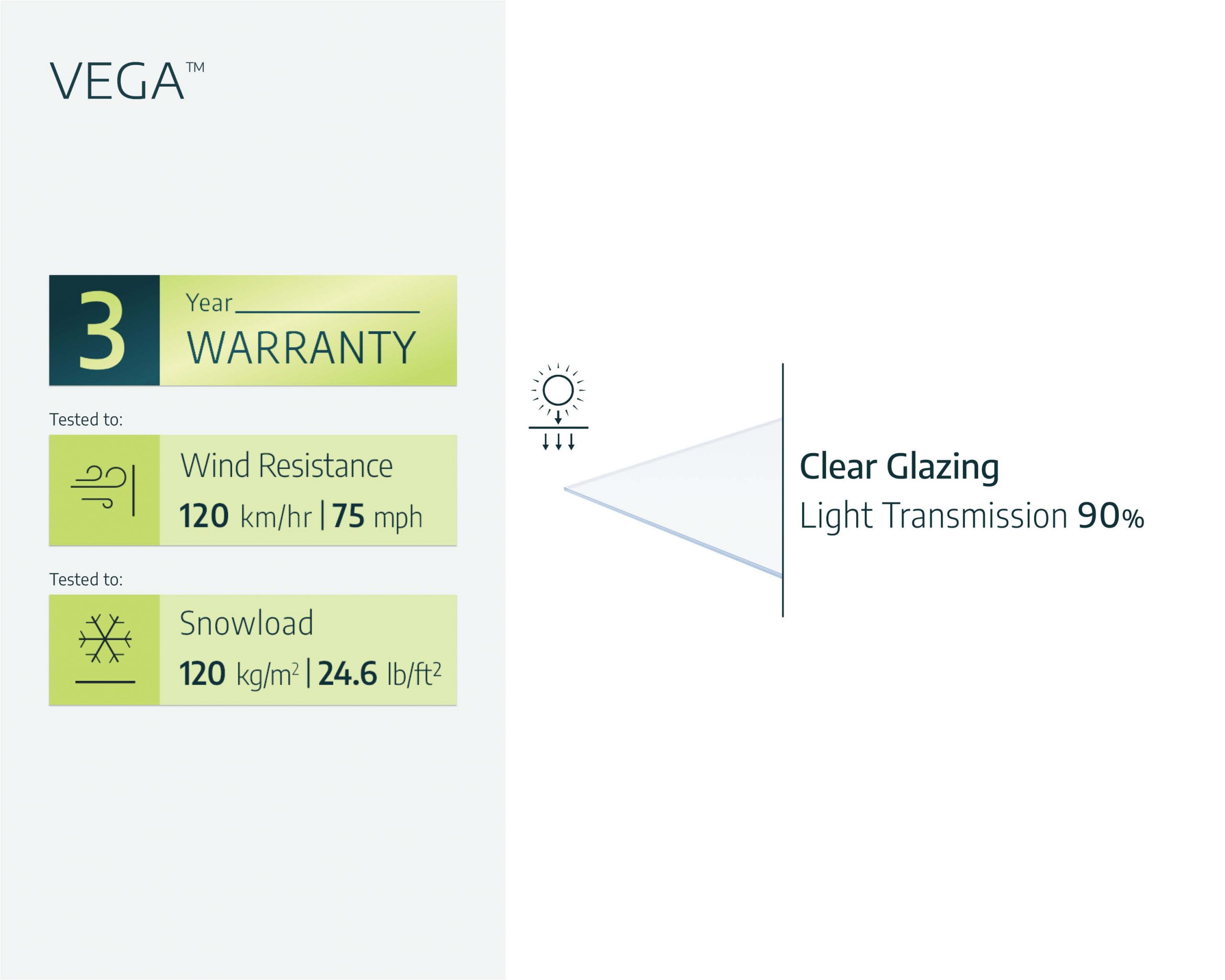- Life-time resilient glazing; does not fracture, become brittle or turn yellow over time.
