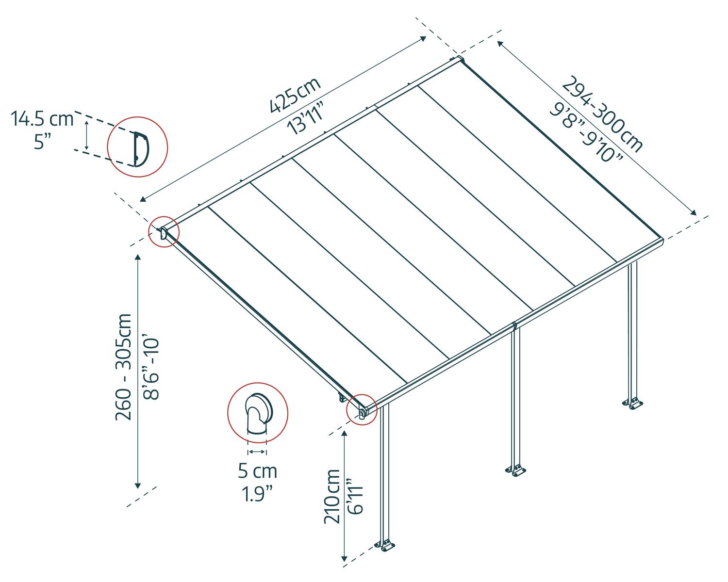 | A | Length | 425cm | 13'11"ft |