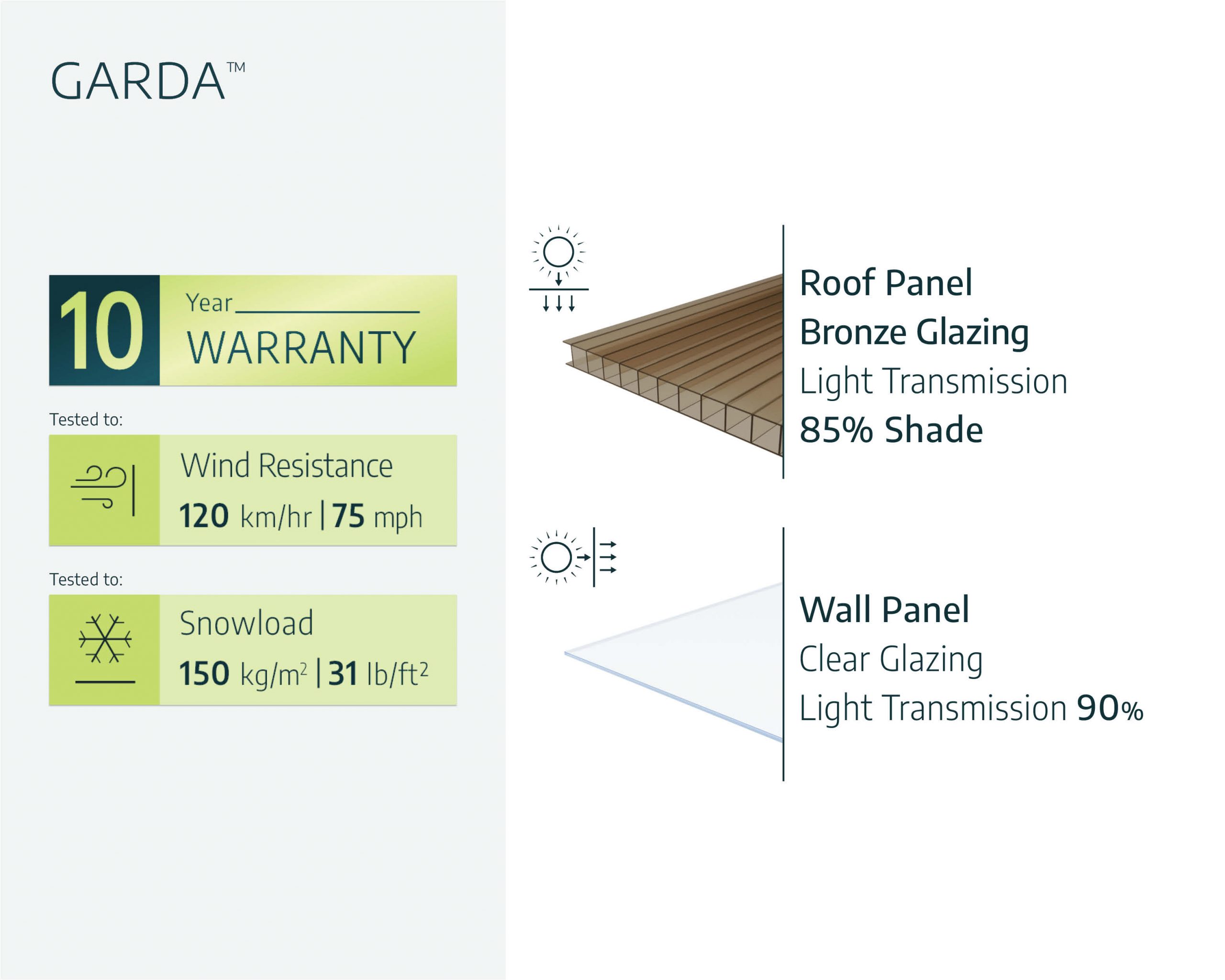 - Virtually unbreakable, 16 mm multi-wall polycarbonate roof panels