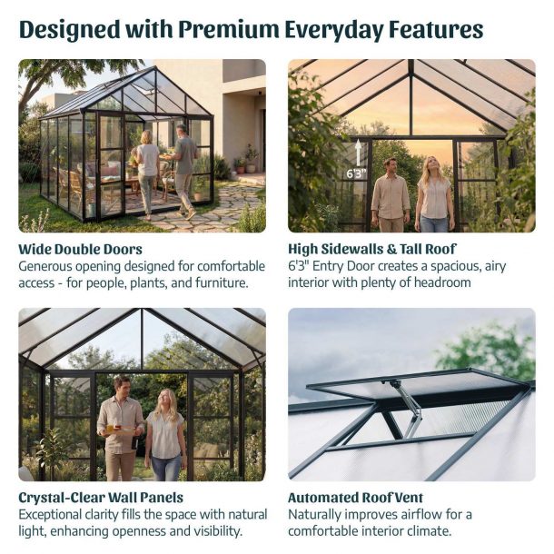 - Built-In Gutter System: Channels rainwater for irrigation use, supporting sustainable gardening practices.