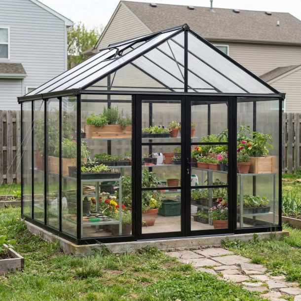 A serene retreat designed for those who find joy in nature, the 10‘x10’ Aria Greenhouse offers a perfect balance of beauty and functionality. Whether you’re nurturing a thriving garden, creating a tranquil space to relax, or simply soaking up the sunlight, this thoughtfully designed greenhouse transforms your outdoor space into something extraordinary.