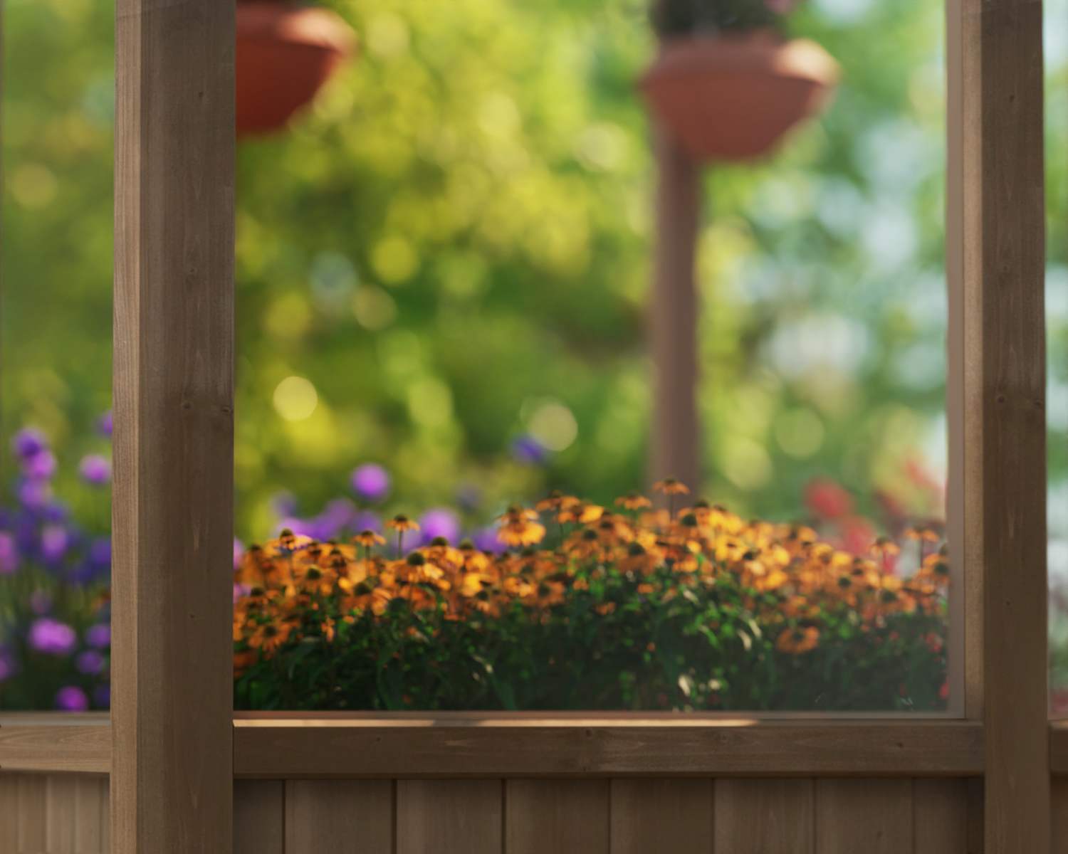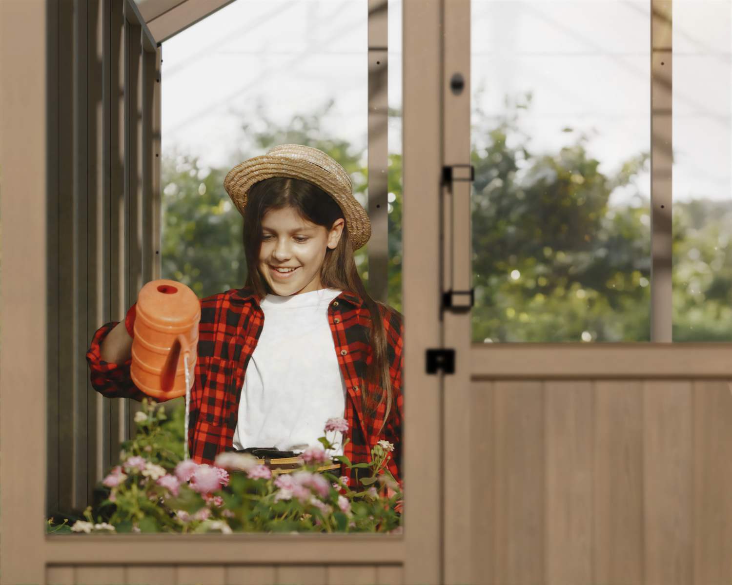 Cedar’s resistance to pests and decay keeps it looking and performing its best year after year, while the crystal-clear panels let in over 90% of sunlight to help your plants thrive. From its low-threshold entry to its automated roof vent, every detail is crafted to make gardening easier and more enjoyable.