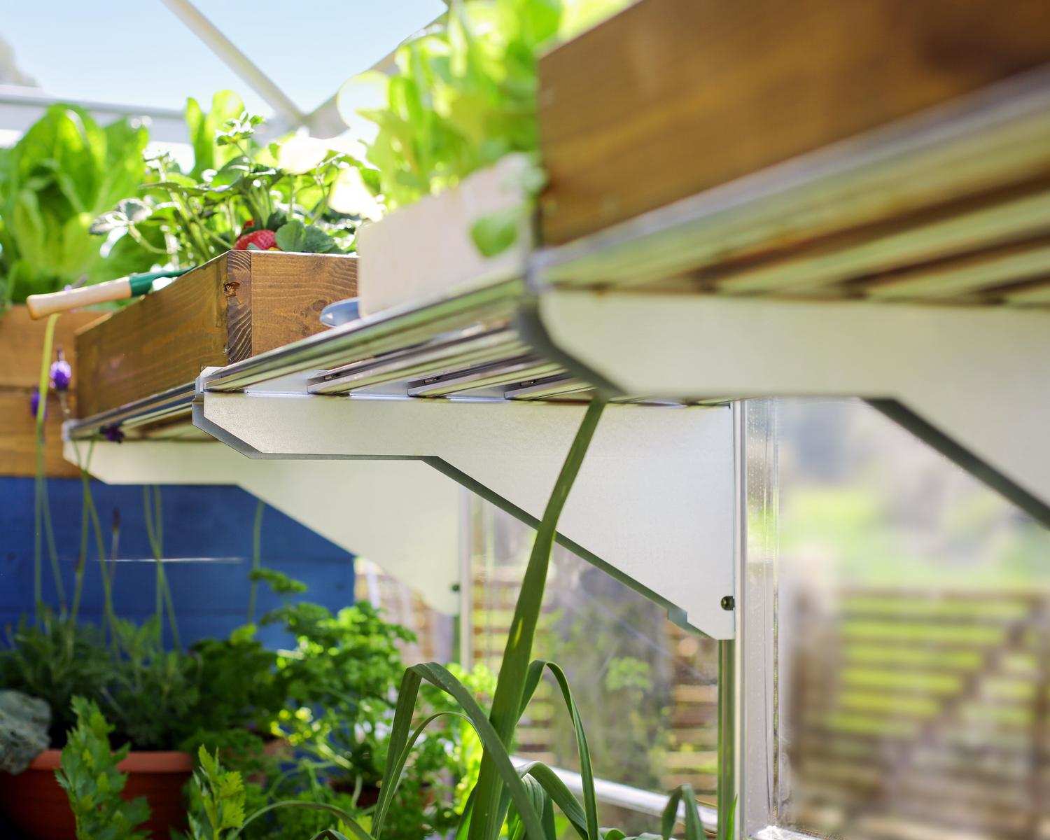 - Clamps to the Aluminum frame anywhere inside the greenhouse