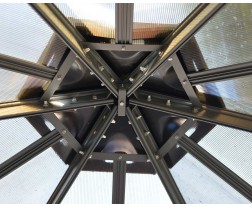 Virtually unbreakable 6 mm twin-wall polycarbonate roof panels are high impact and shatter resistant Treated bronze glazing Transmits natural sunlight on overcast cloudy days yet provides sufficient shading Maintain their integrity, provide complete UV blockage, and are 100% UV protected; they do not discolor, fracture or become brittle over time ready to assemble pre-cut panels Sliding panels assembly system