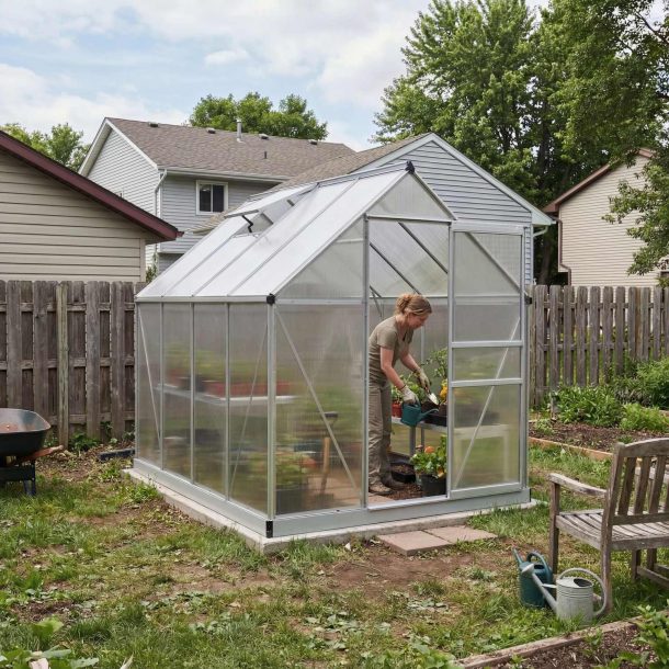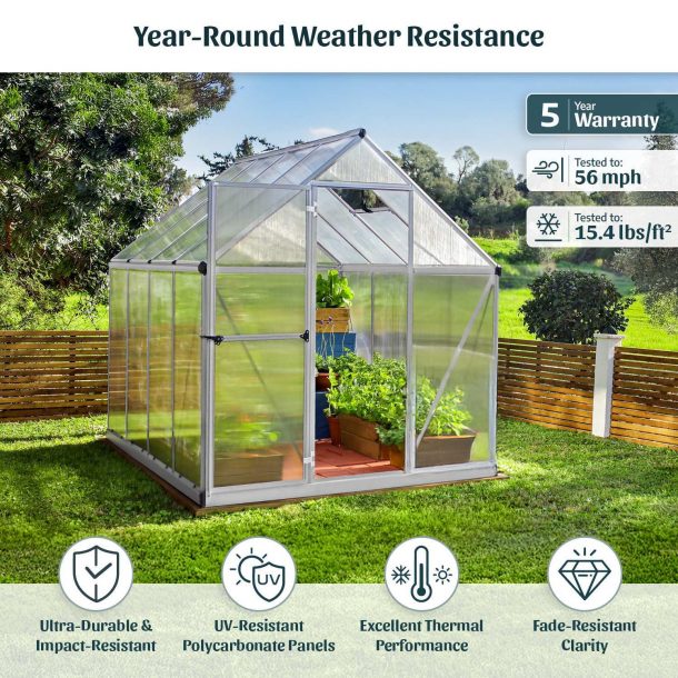 If you need to heat or cool your greenhouse in extreme weather conditions, you may want to consider a twin-wall greenhouse such as the Canopia Glory Greenhouse which has a 10mm polycarbonate covering.