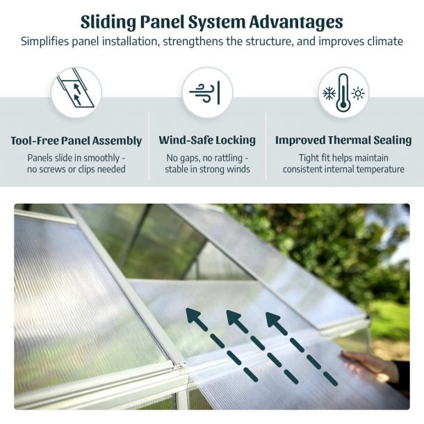 - Built with light-diffusing twin-wall glazing for soft light irradiance and level temperatures