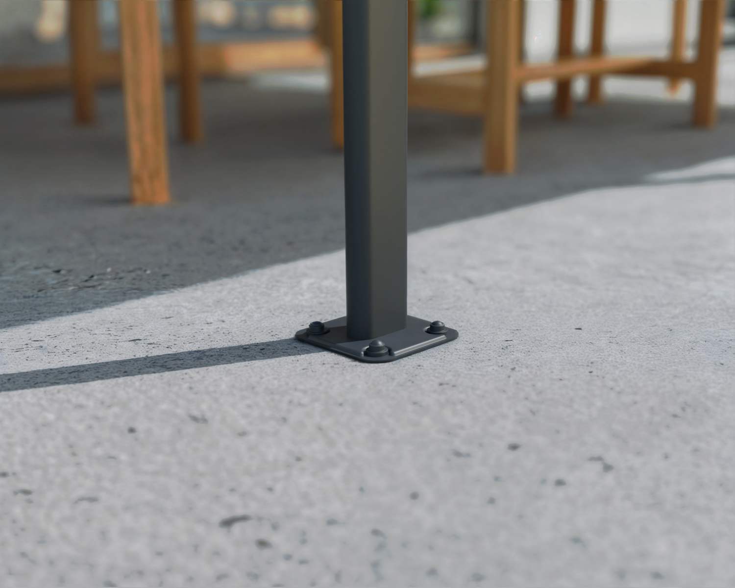 • Flexible and Adjustable: Choose height and distance from wall and between poles for a customised experience for your patio or porch. Foot pad kit included. Please note that a solid level surface and wall support is required.