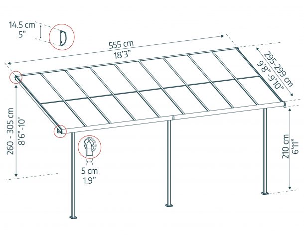 - Resilient Panels: The 6 mm matte opaque grey roof panels have full shade glazing with “Heat Block Technology”, preventing the sun’s rays from shining through making it cooler and protecting your outdoor space. Canopia polycarbonate panels are 100% UV protected, they do not turn yellow or become brittle over time.