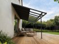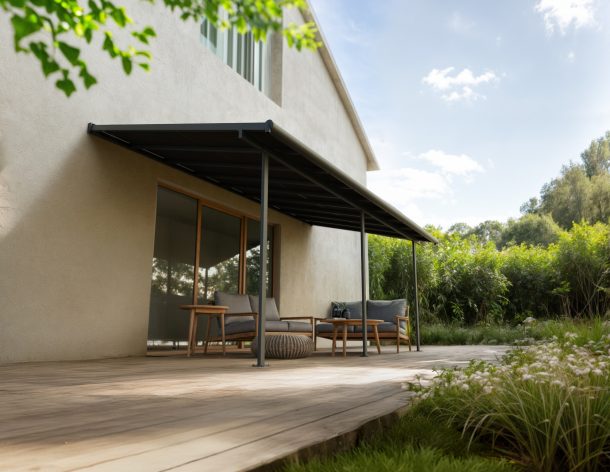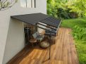 The Canopia Cabrio patio cover allows you to control sunlight and air, providing shade, ventilation, and complete rain protection. The Cabrio combines the durability of a polycarbonate patio cover with the functionality of a sliding roof, giving you a traditional patio roof with the flexibility of an awning. This allows you to enjoy the patio in all weather conditions, whether with friends or simply relaxing in a lounge chair. In summer, you can shield yourself from UV rays or let the smoke from a barbecue dissipate – open and close the sliding roof according to your needs. The sliding roof can be operated quickly and easily with a rod. With flexible positioning, you designate the height where it connects to your home, the distance from the house, and the space between the front poles. Though it has a flat roof, the Sierra Cabrio Porch Cover has integrated gutter heads that divert water, keeping you dry and your outside space usable no matter the weather.