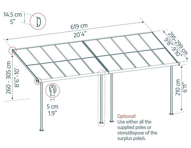 - Unique Sliding Roofing System: Roof panels don’t use any screws, preventing leaks. Manually sliding polycarbonate roof patio cover can be opened 50%, which controls sunlight and air, providing shade, great ventilation, and or complete rain protection. The sliding roof can be operated quickly and easily with a rod.