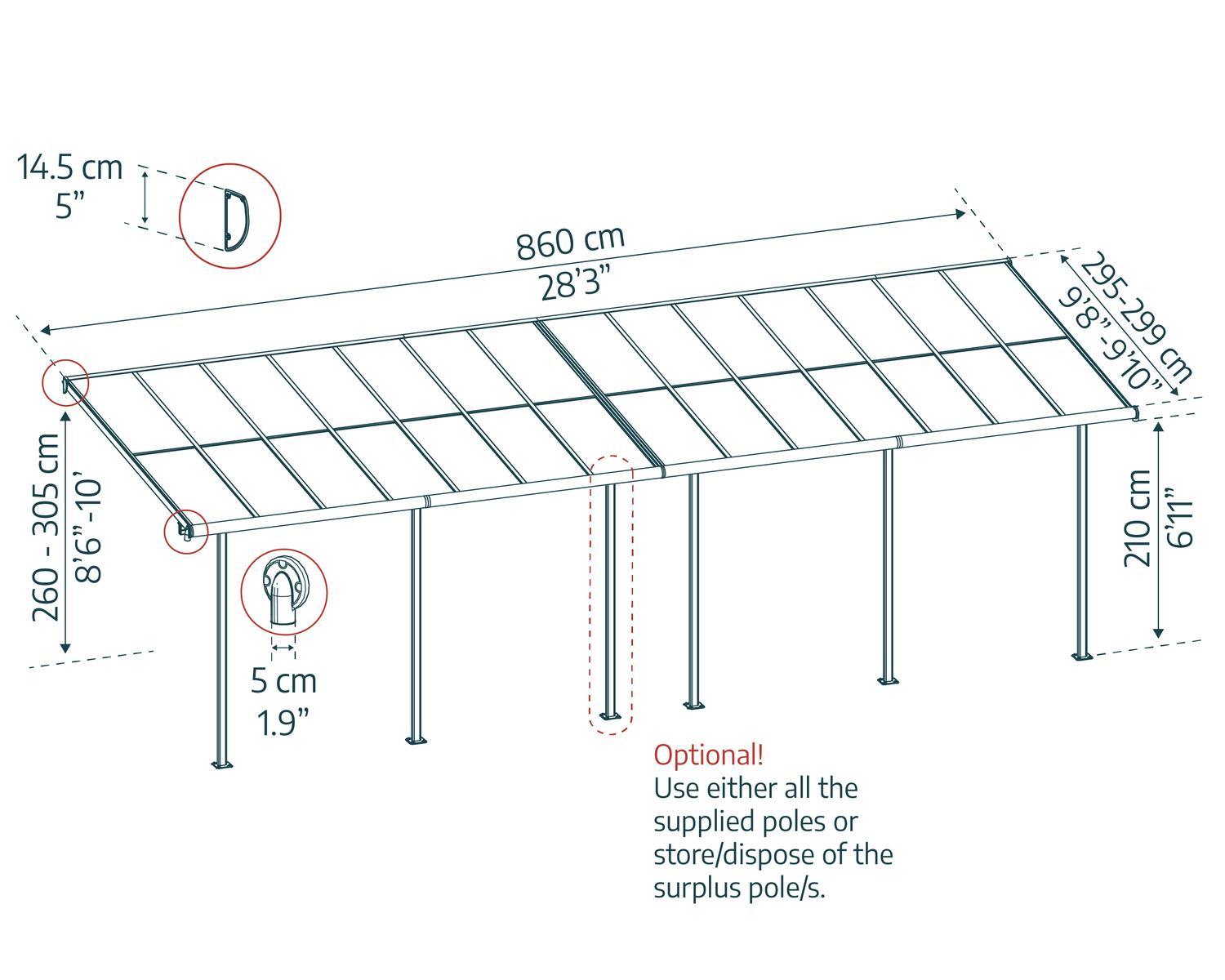 | A | Length | 860cm | 28'3"ft |