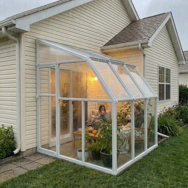 Increase the amount of time you can enjoy the outdoors in a safe setting with our diy sunroom kits with its easy installation. The classic, clean lines along with its year-long usability make it a natural supplement to your home, adding light and elegance that will easily blend with any home design, augmenting its beauty and value. It is the perfect environments to sit back kick off your shoes and enjoy your time off. Use it as an indoor Jacuzzi, for entertaining or alternately use it as a hobby greenhouse during winter season. The combination of the 2 glazing types allows a very pleasant atmosphere and generates a comfortable lounging environment; twin-wall Polycarbonate roof panels and UV immune Acrylic wall panels. The robust resin frame with its additional Aluminum profiles allows the use of sliding technique for easier assembly. Our home adjoining sunroom addition is built for a long and lasting use.