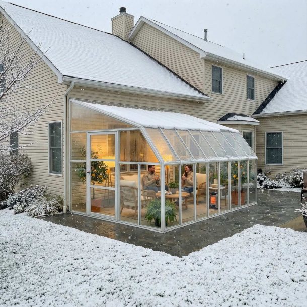 Increase the amount of time you can enjoy the outdoors in a safe setting with our solarium addition with its easy DIY installation. The classic, clean lines along with its year-long usability make it a natural supplement to your home, adding light, elegance, and spaciousness that will easily blend with any home design, augmenting its beauty and value. It is the perfect environment to sit back kick off your shoes and enjoy your time off. Use Sunroom kits as an indoor Jacuzzi, for entertaining or alternately use it as a hobby greenhouse during the winter season. The combination of the 2 glazings allows a very pleasant atmosphere and generates a comfortable lounging environment; twin-wall Polycarbonate roof panels and UV immune Acrylic wall panels. The robust resin frame with its additional Aluminum profiles allows the use of a sliding technique for easier assembly. Our home adjoining structure is built for long and lasting use.